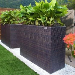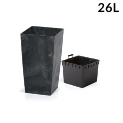 Blumentopf mit ansprechender Optik aus recyceltem Kunststoff. Einfach zu reinigen. Material ist frostbeständig und kann daher auch ganzjährig draußen verwendet werden.