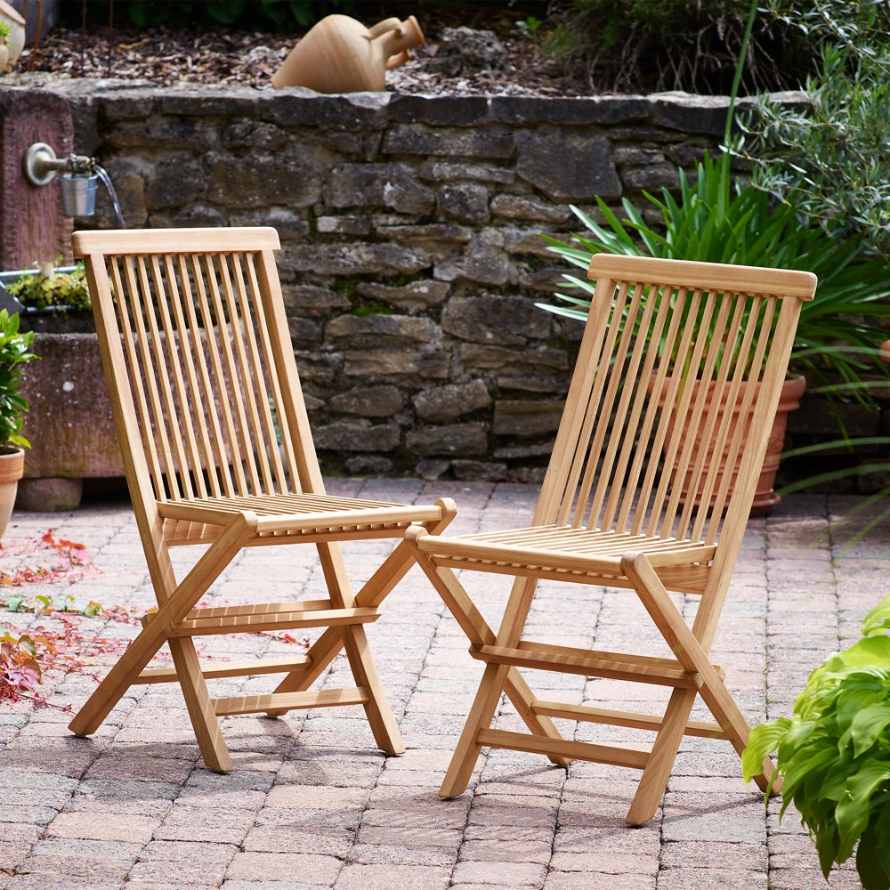 Die hochwertigen Teak-Stühle können bei Nichtgebrauch zusammengeklappt & platzsparend beiseite gestellt werden. Solltest du Besuch bekommen hast du im Handumdrehen einen weiteren Stuhl aufgeklappt und am Tisch platziert.