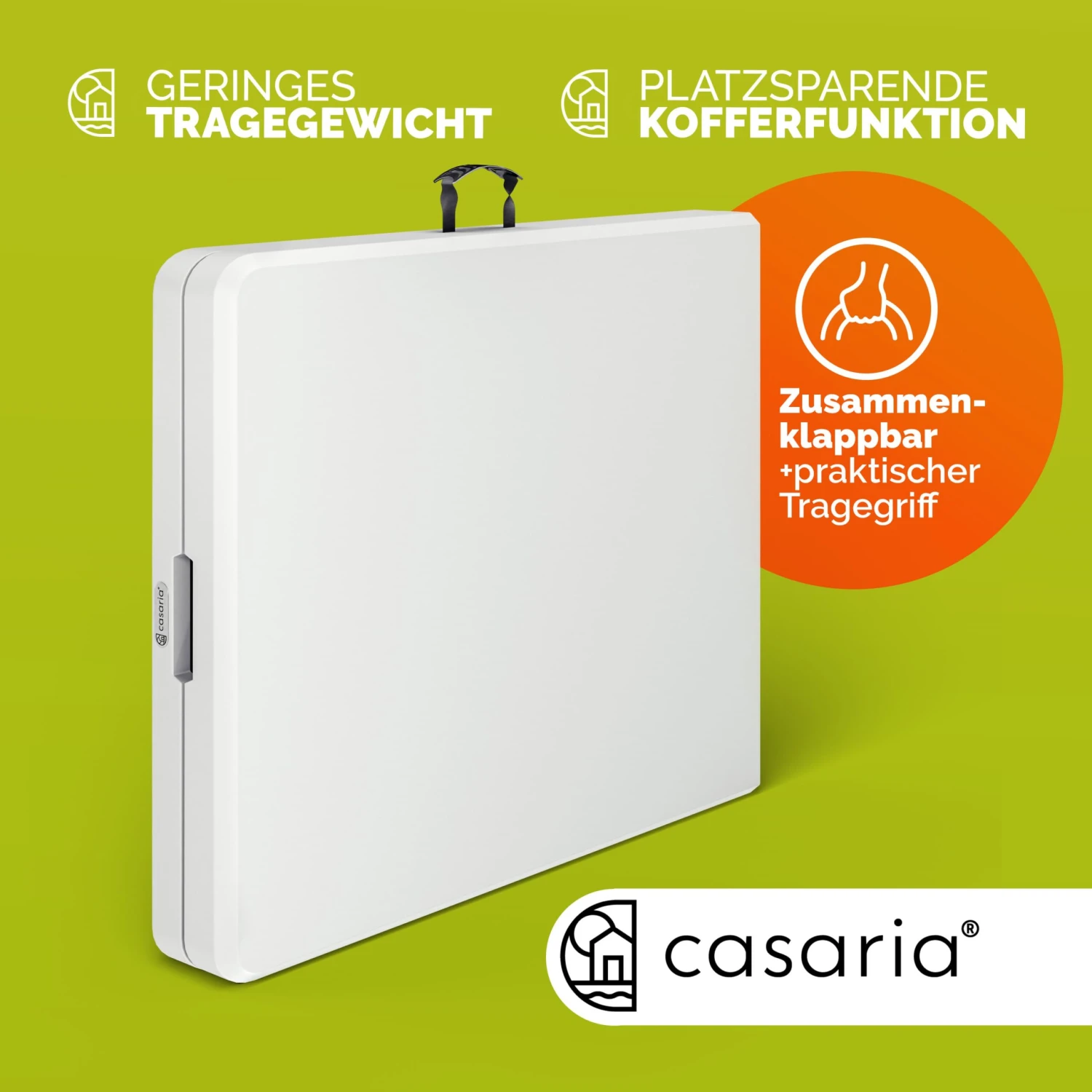 Der große Gartentisch von Casaria® ist mit wenigen Handgriffen einfach klappbar und hat ein kofferraumfreundliches Packmaß von nur 91,5 cm Länge, ideal auch zum Verstauen bei Nichtgebrauch. Platz bietet der Klapptisch aufgebaut für bis zu 8 Personen.