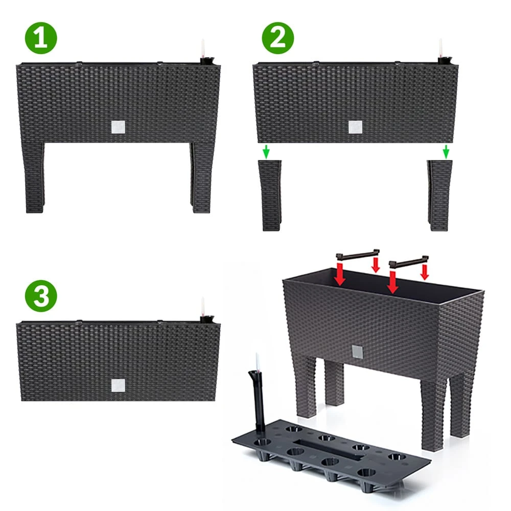 Querstreben halten den Topf in Form und schaffen 3 separate Räume im Blumentopf. Der Wasserstand lässt sich über das Bewässerungssystem ganz einfach kontrollieren.