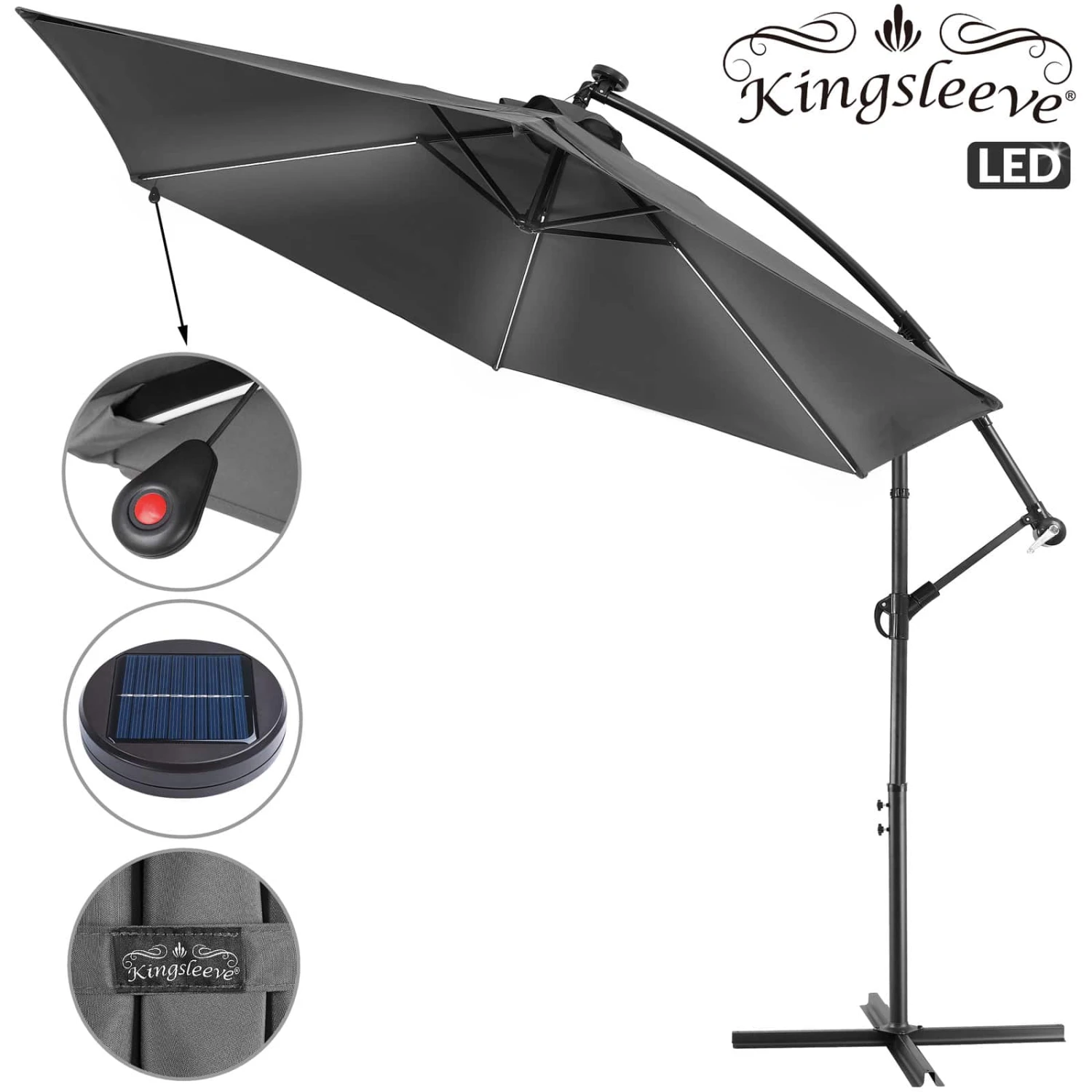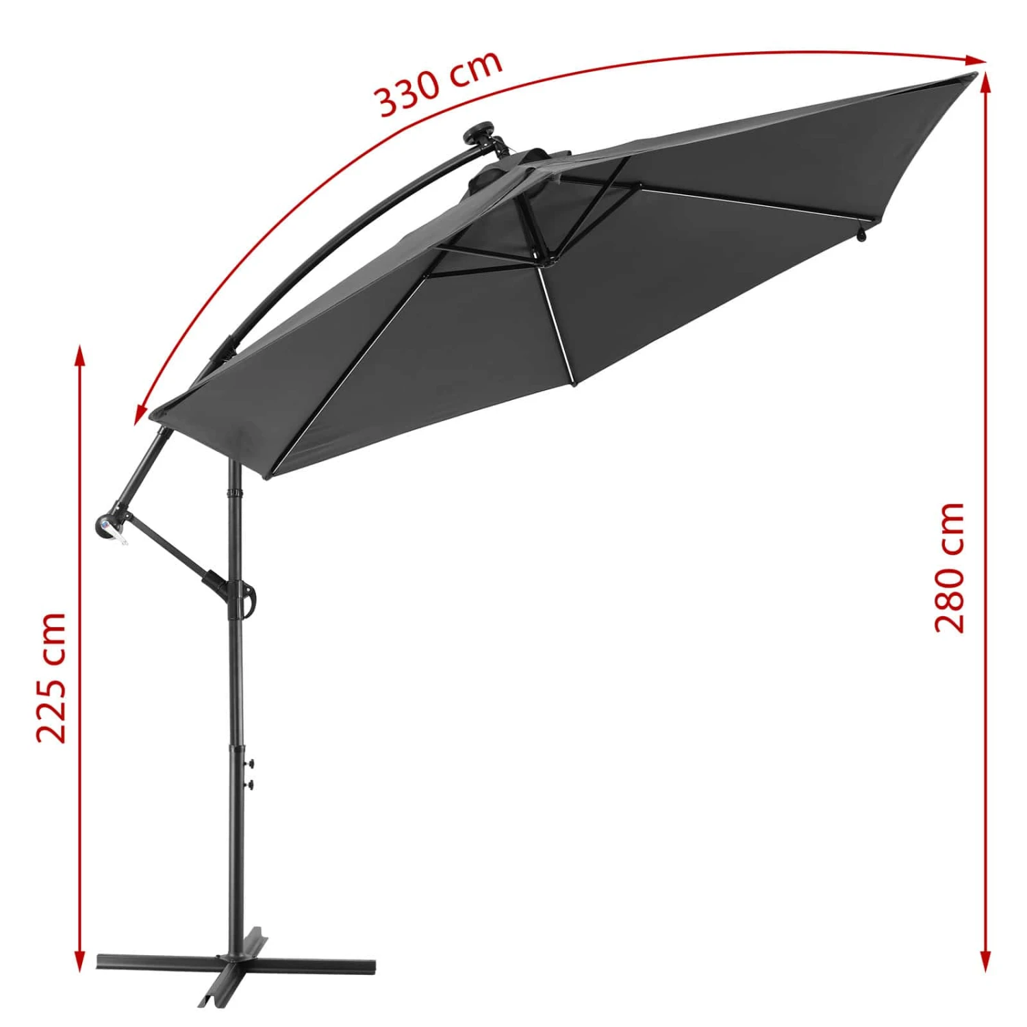 - 1 x Sonnenschirm mit Ständer und integrierter LED Beleuchtung + Solarpanel