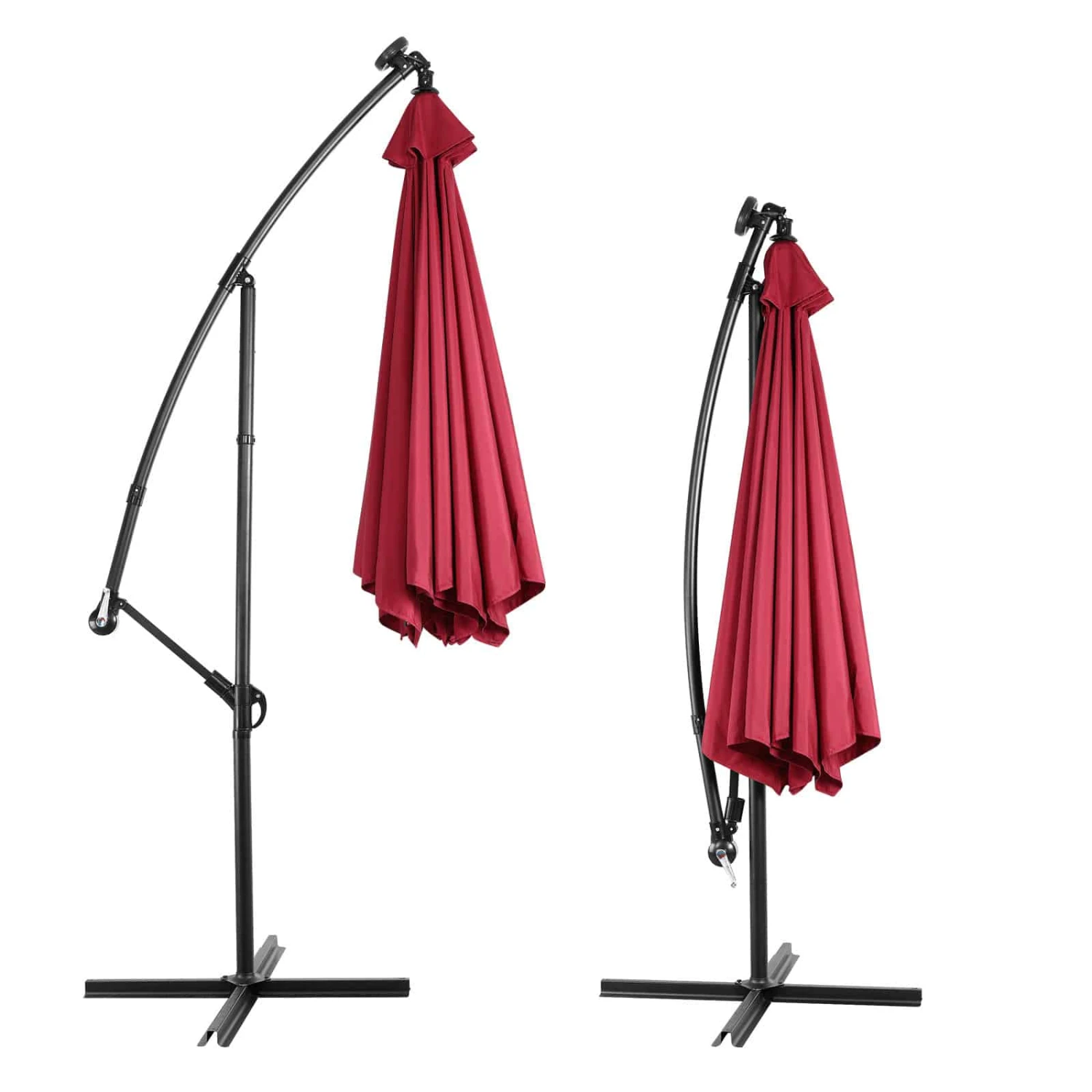 Der Sonnenschirm kann ganz einfach und mit wenigen Handgriffen zusammengeklappt und platzsparend zerlegt werden. Durch die integrierte Kurbel ist der große Sonnenschirm im Handumdrehen auf- bzw. zu gekurbelt.