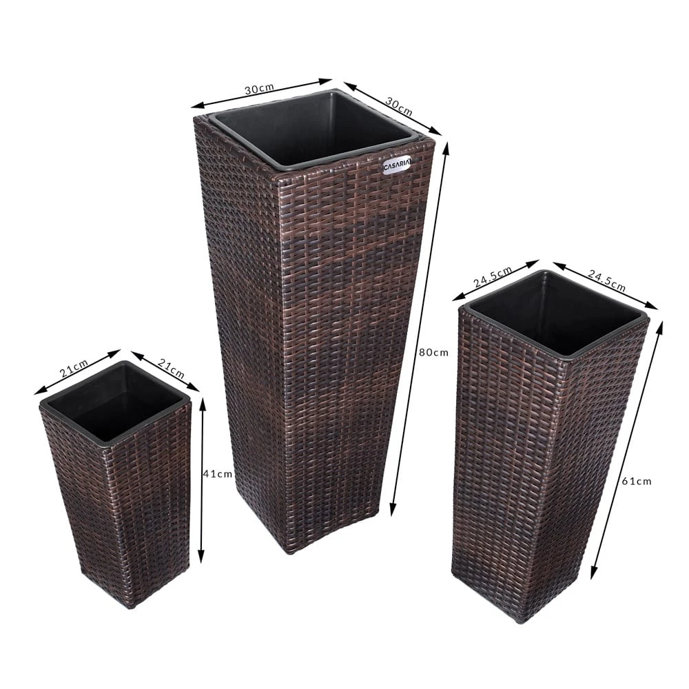 Das 3er-Pflanzkübel-Set von Casaria® ist ideal für Bepflanzungen im Garten, auf dem Balkon, in der Wohnung oder im Wintergarten. Die stilvollen Blumentöpfe aus handgewobenem Polyrattangeflecht sind ein wahrer Blickfang. Sie können das Set sowohl außen als auch innen nutzen.
