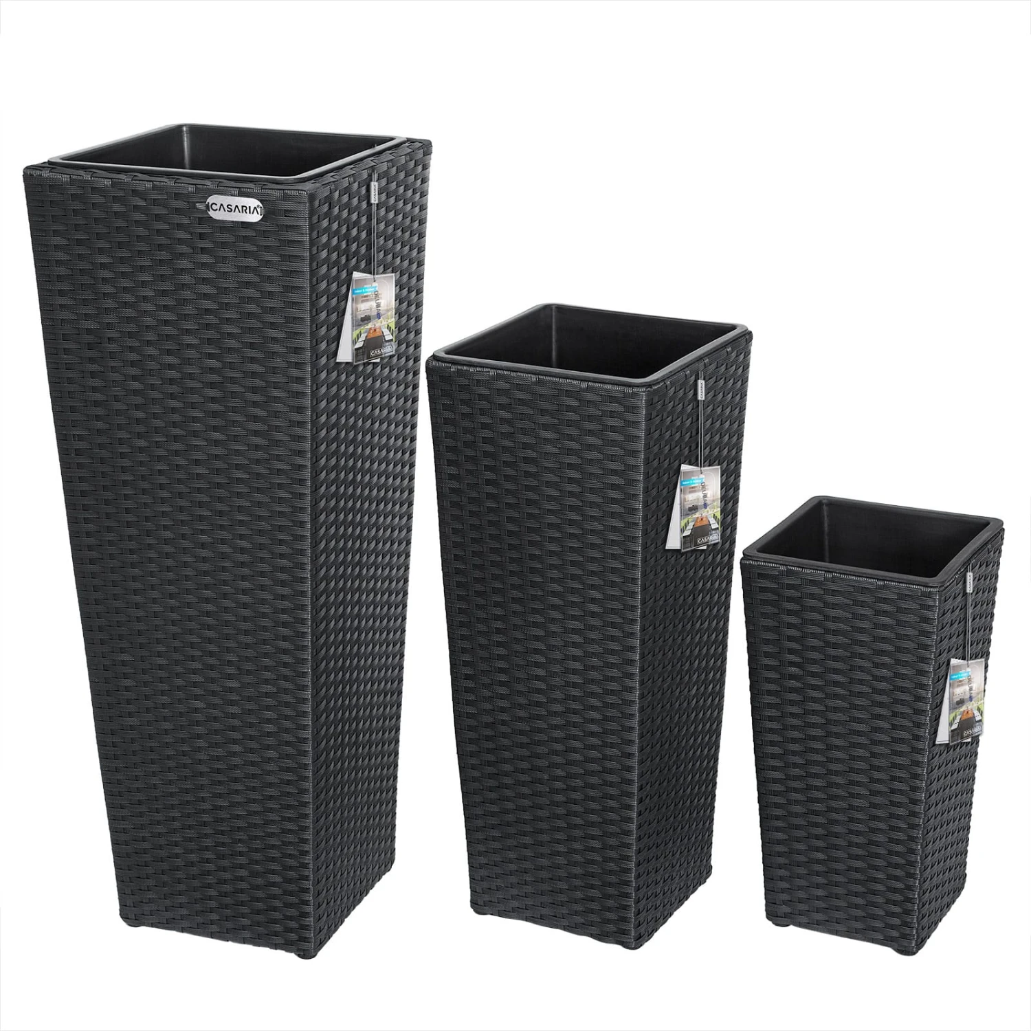 Das 3er-Pflanzkübel-Set von Casaria® ist ideal für Bepflanzungen im Garten, auf dem Balkon, in der Wohnung oder im Wintergarten. Die stilvollen Blumentöpfe aus handgewobenem Polyrattangeflecht sind ein wahrer Blickfang. Sie können das Set sowohl außen als auch innen nutzen.