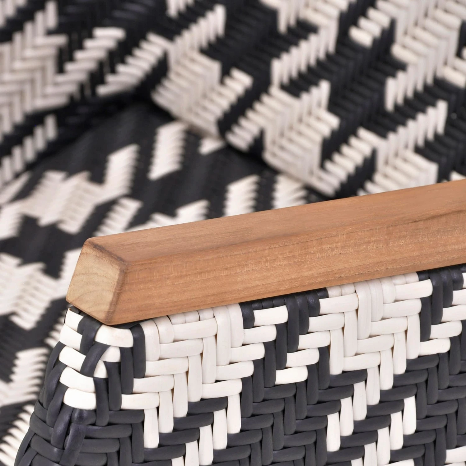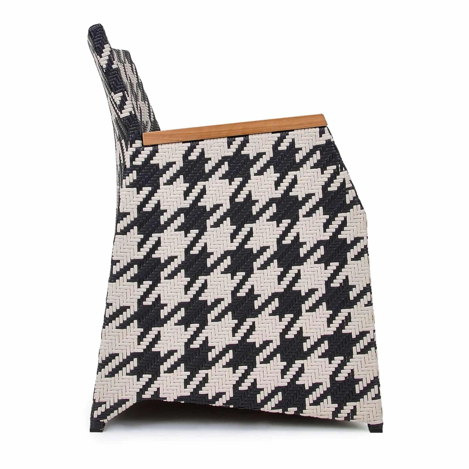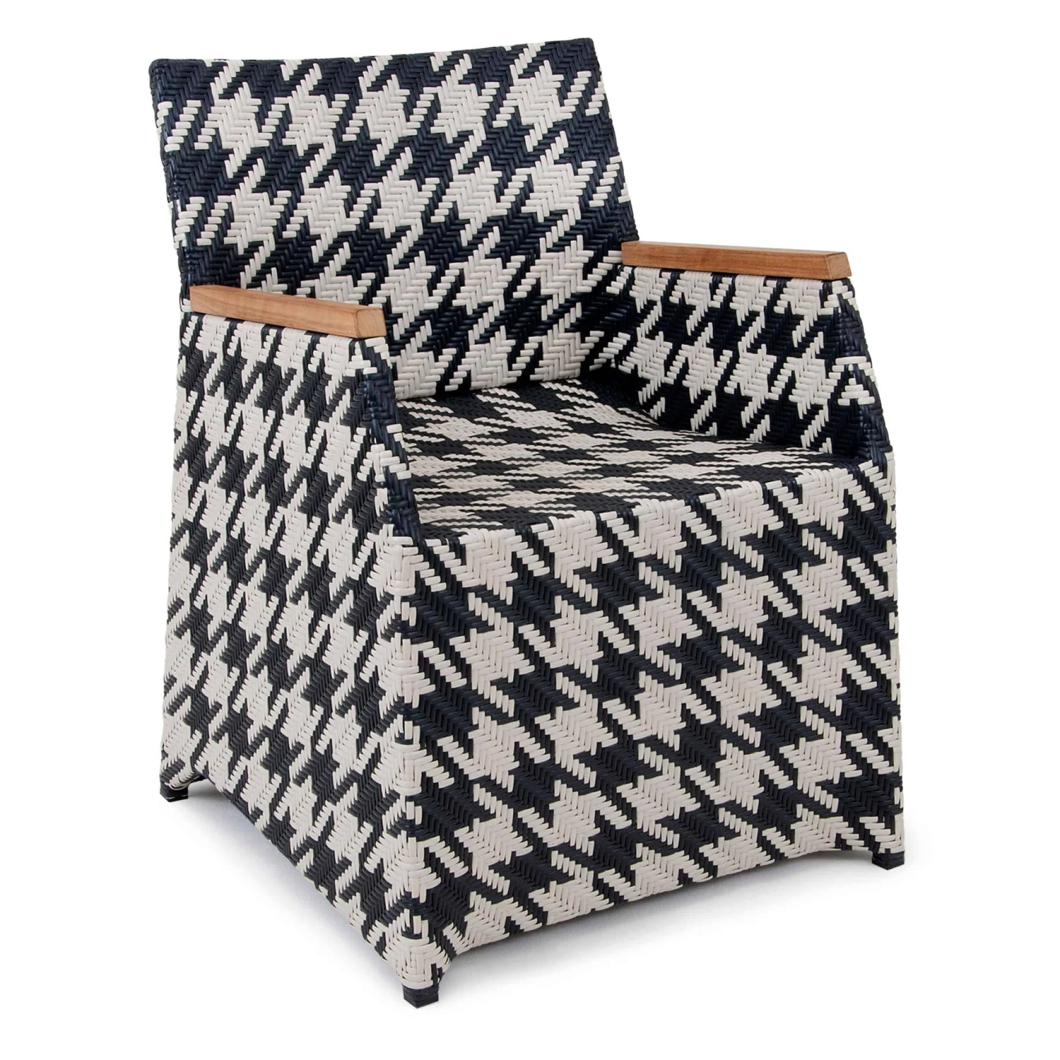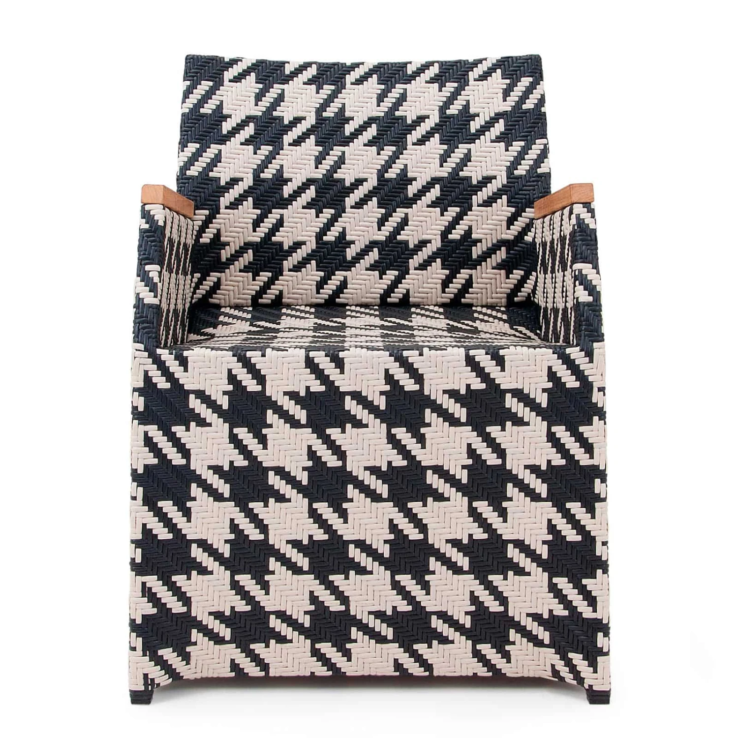 Den extravaganten Design-Stuhl aus Virofiber Polyrattan gibt es in den vier ausdrucksvollen Musterungen: Retro, Taiwan, Tangram und Payette.