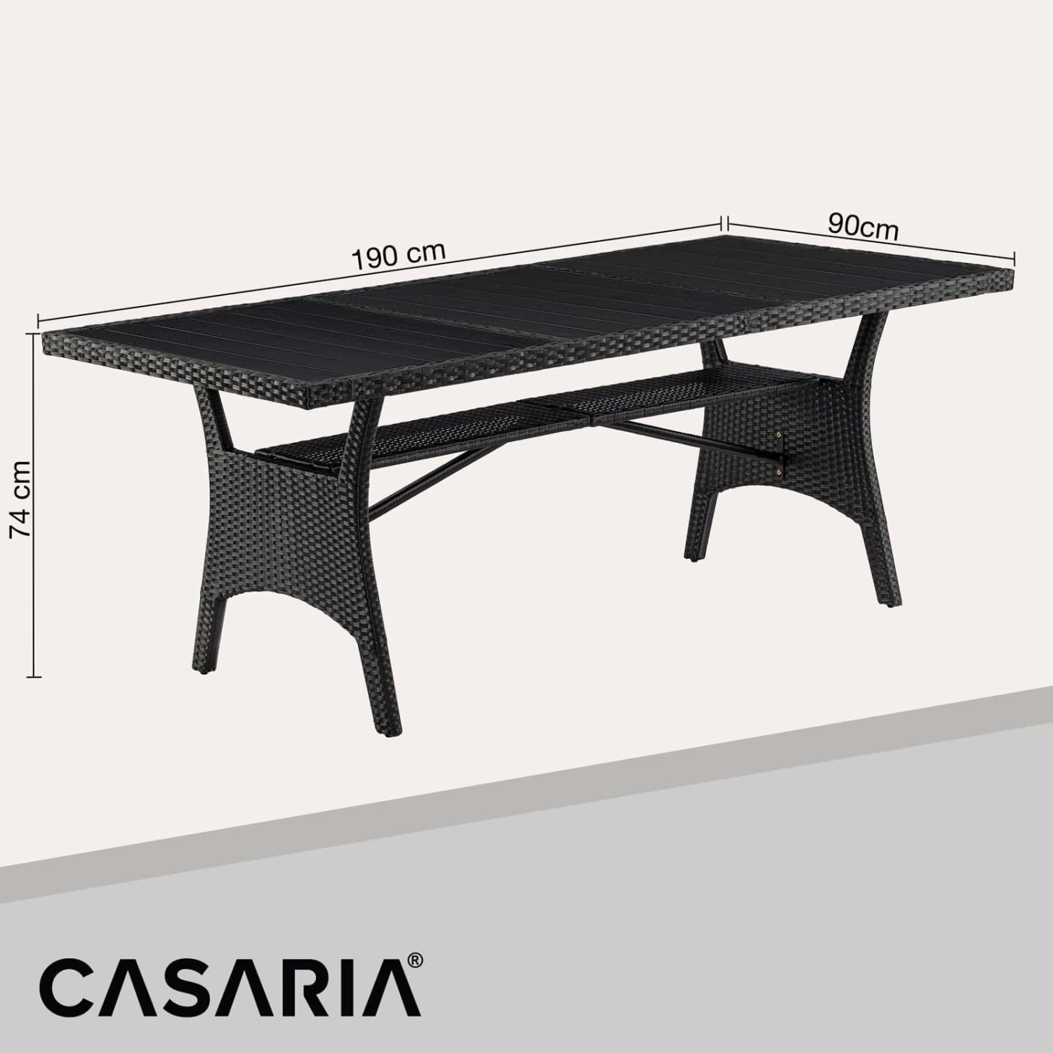- Gesamtmaß Tisch (LxBxH): 190 x 90 x 75 cm