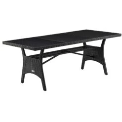 Dieser exklusive Polyrattan Gartentisch ist mit einer sehr robusten und widerstandsfähigen Tischplatte aus WPC in Holzoptik ausgestattet. Dadurch ist der Tisch vor Wind und Wetter gut geschützt und ideal für den Garten, die Terrasse oder im Haus geeignet.