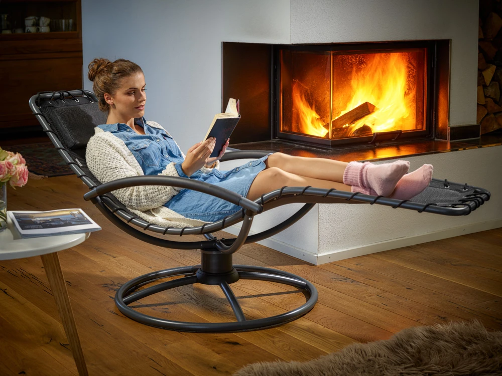 Die spezielle Konstruktion ermöglicht dank perfekt balancierter Spiralfeder sanfte und entspannende Schwingbewegungen in alle Richtungen. Das besonders bequeme Kissen an der Kopfstütze ist abnehmbar. Kissen und Liege sind luftdurchlässig und schnell trocknend und Sie erleben so auch im Sommer eine frische und angenehme Zeit auf der Relaxliege.