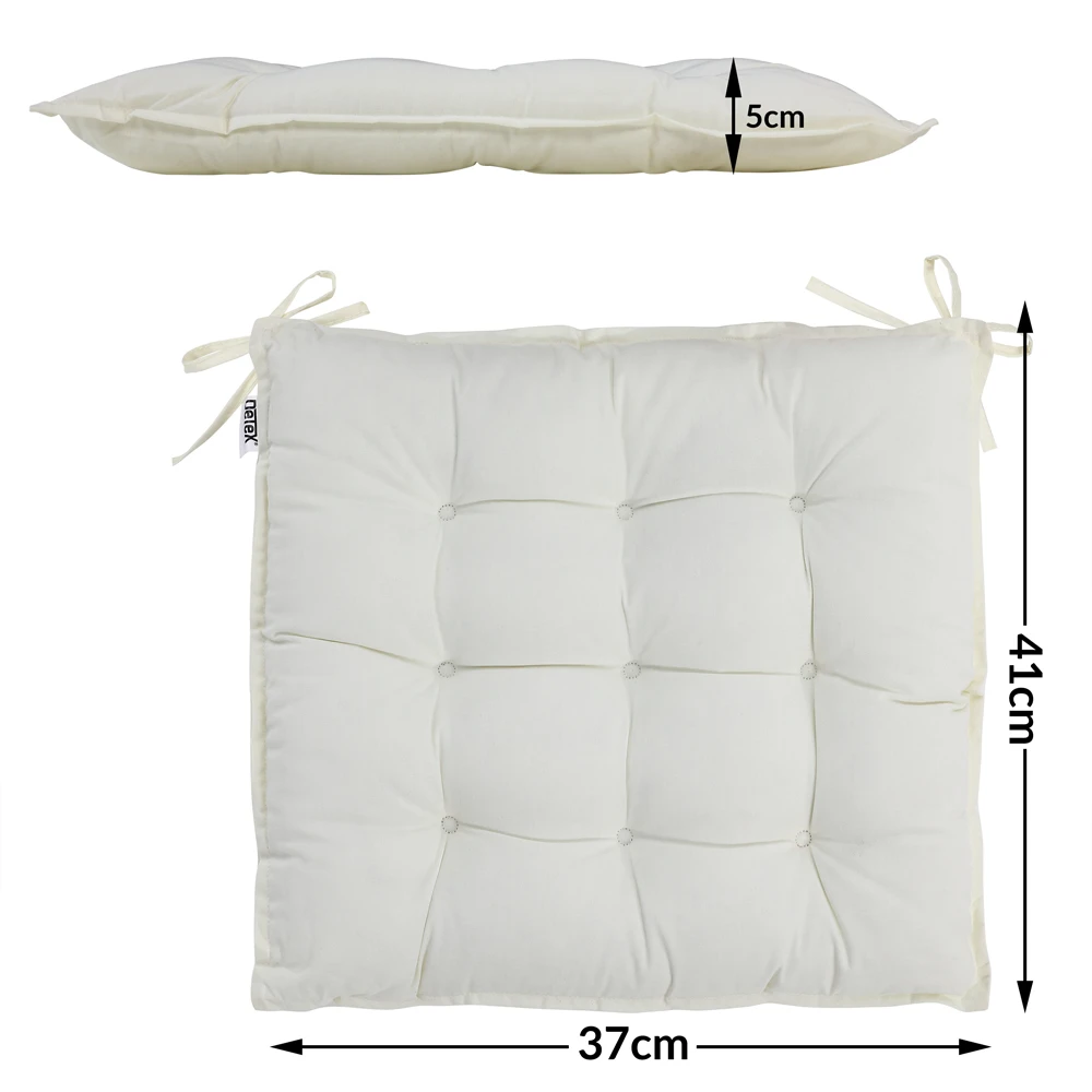 Mit den optimalen Abmessungen passen die Kissen auf alle gängigen Stühle. Dank seitlich angebrachten Haltebänder lässt sich das lästige Verrutschen der Polster leicht verhindern.