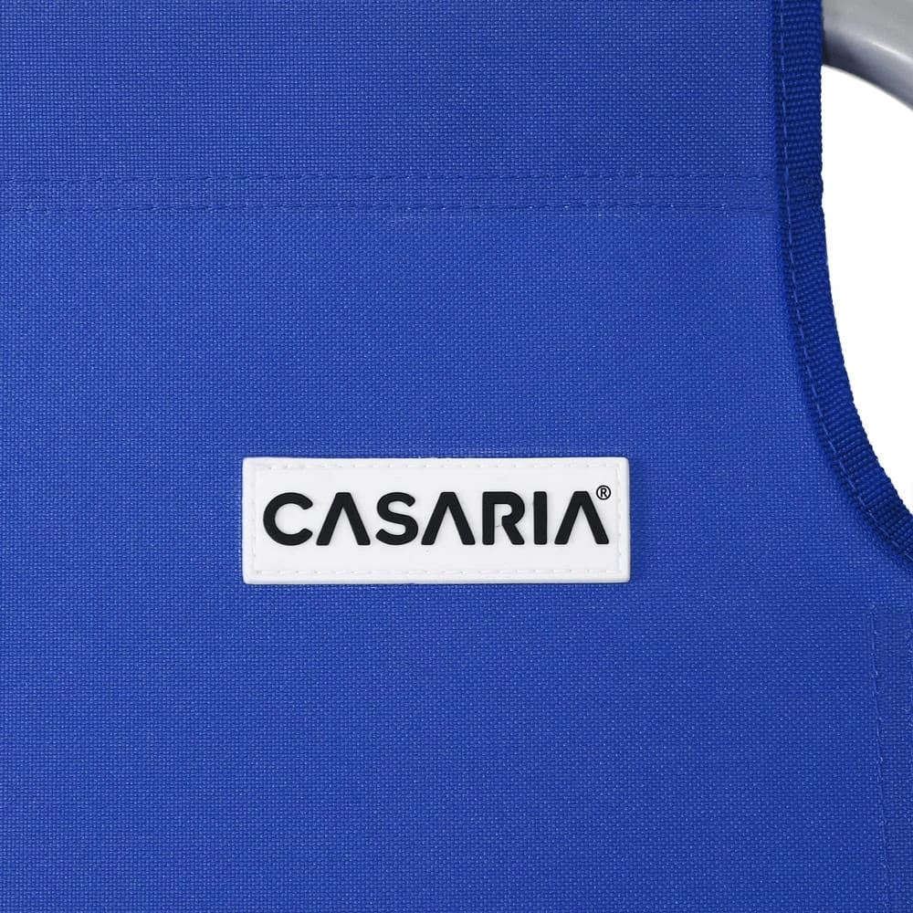 Der pulverbeschichtete Metallrahmen und der pflegeleichte und angenehme Nylonbezug, sorgen für eine widerstandsfähige und bis 150 kg belastbare Klappliege.