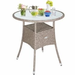 - Maße: Höhe 110 cm; Tischplatte Ø 72 cm
